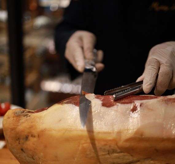 Coloca el jamón en un lugar fresco, seco y ventilado, lejos de fuentes directas de calor o sol. Una vez empezado, tapa el corte con un poco de la propia grasa o un paño de algodón limpio para mantenerlo protegido.