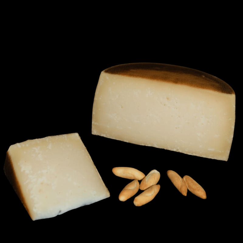 Su textura firme y compacta refleja la maduración prolongada, mientras que su corteza natural, fina y de tono miel resguarda un interior aromático, limpio y lleno de matices. Al corte, revela una pasta uniforme y ligeramente fundente que se deshace en boca, ofreciendo una experiencia intensa pero equilibrada, sin llegar a la aspereza de los quesos excesivamente añejos.